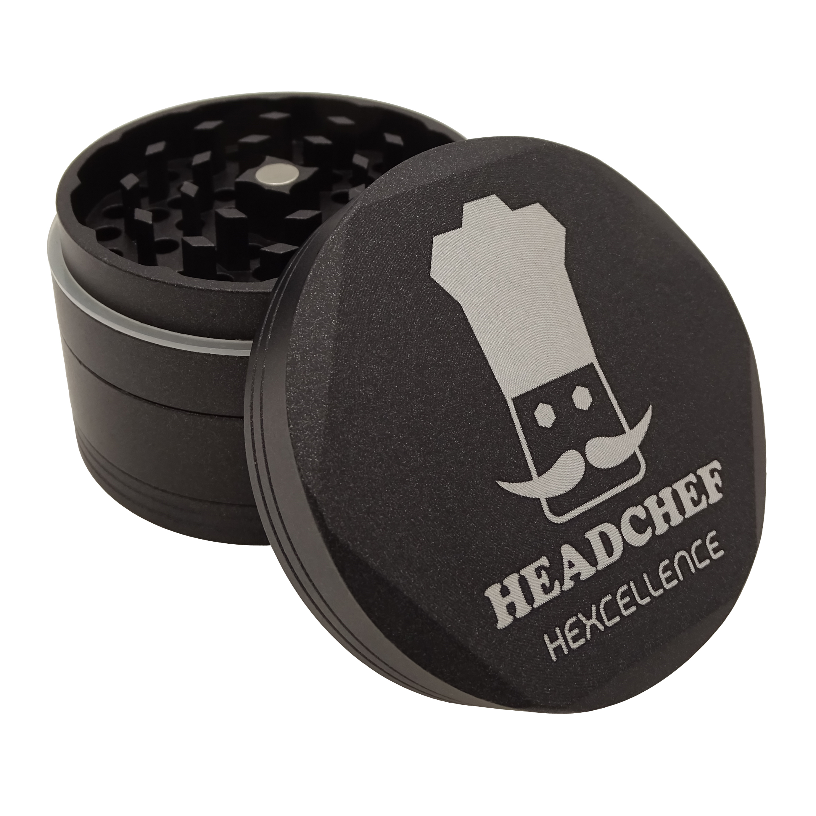HEADCHEF HEXCELLENCE HARDCORE GRINDER – 62MM 4 PIECE – ONYX BLACK